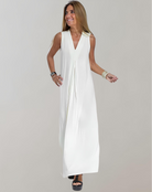 Women's Maxi Dress – Slim Fit – V-neck – Sleeveless – Breathable Luxury Fabric – Pleated Detail