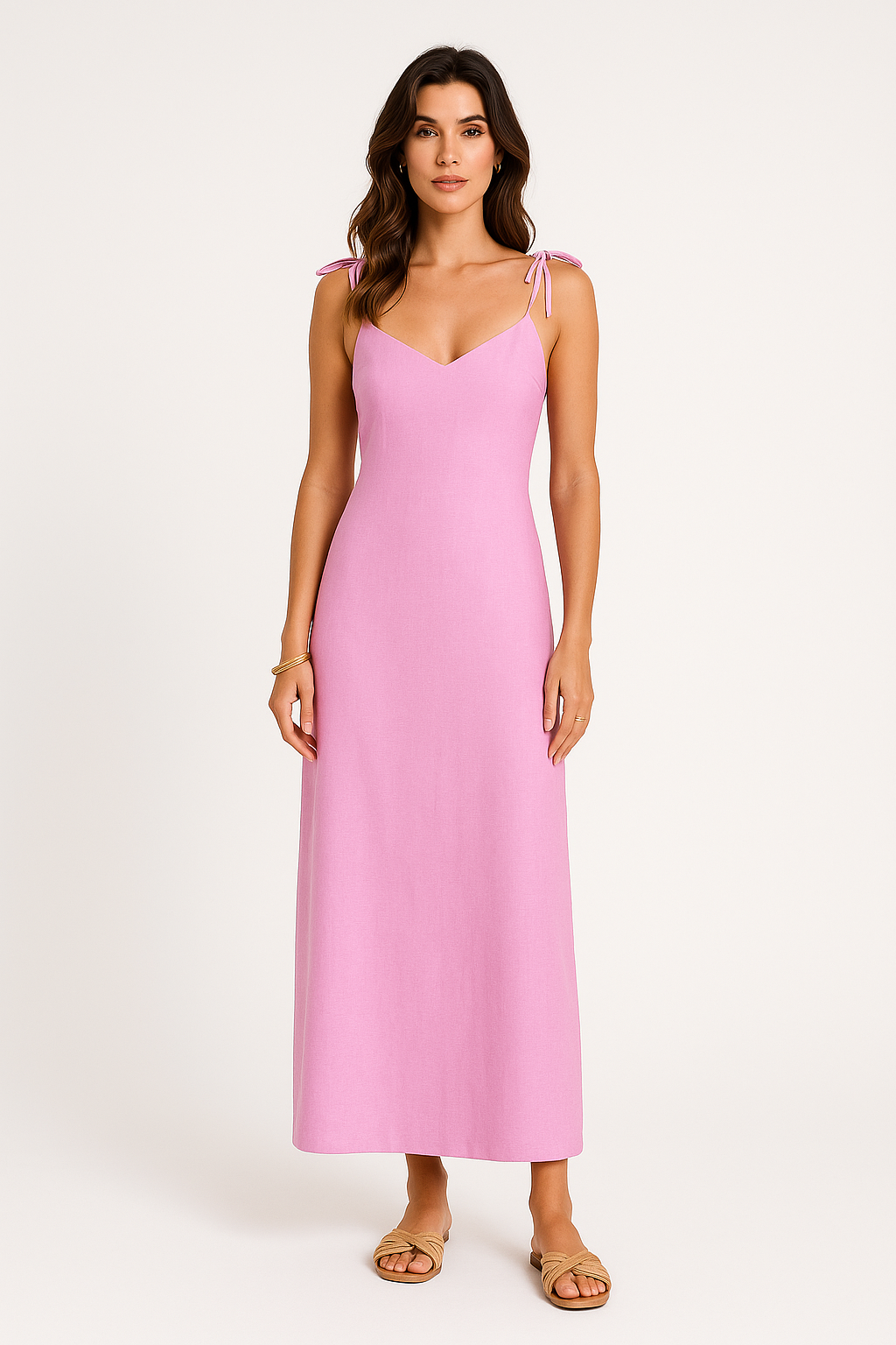 Women's Maxi Dress – Linen Cotton – A-Line Fit – Adjustable Straps – V-Neck