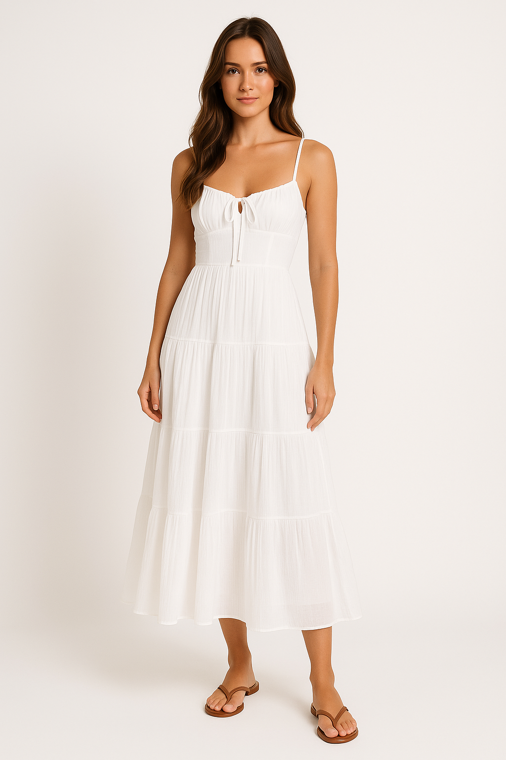 Ladies Maxi Dress – Sleeveless – Backless – Spaghetti Straps – Layered Cotton Look