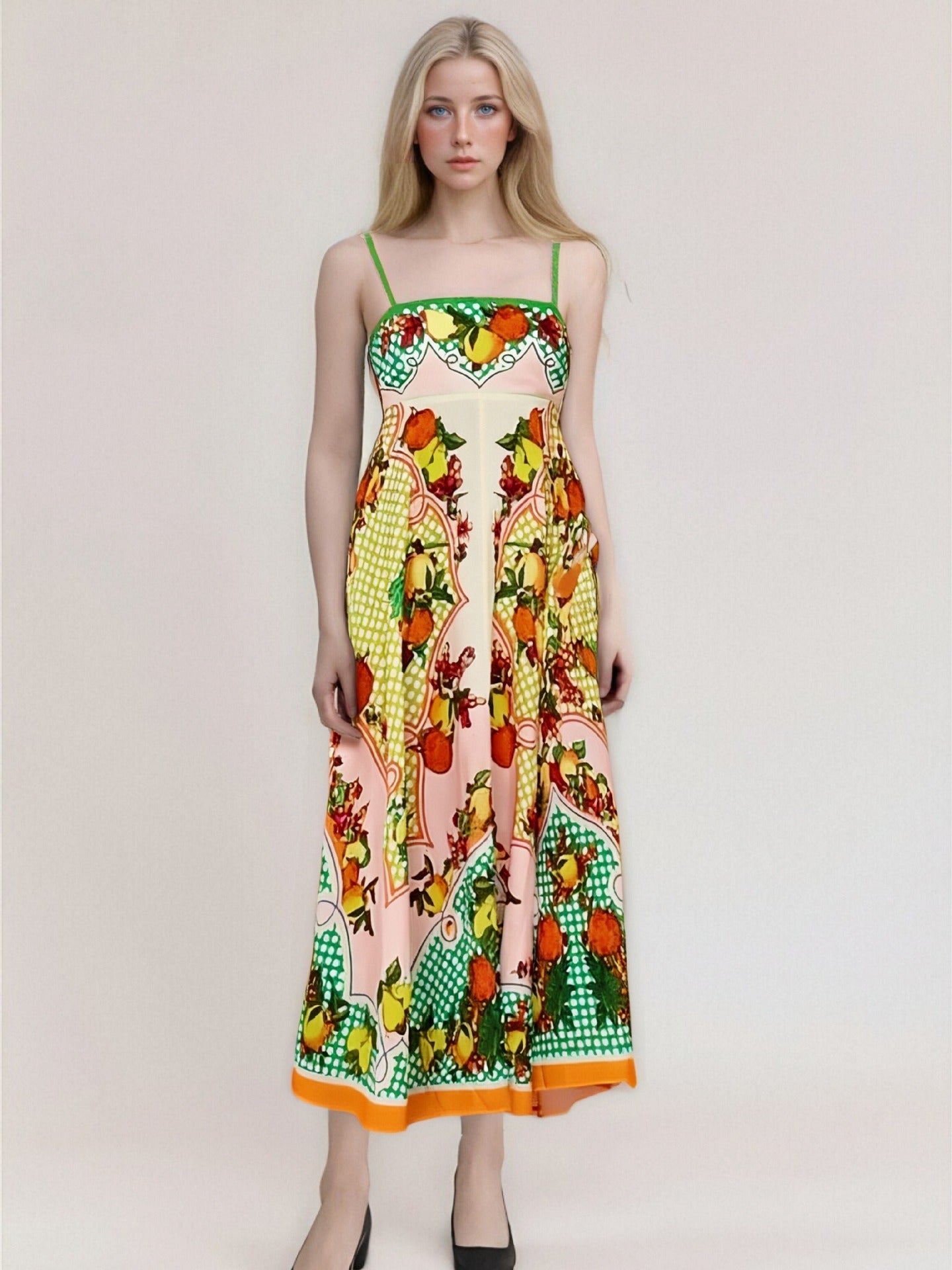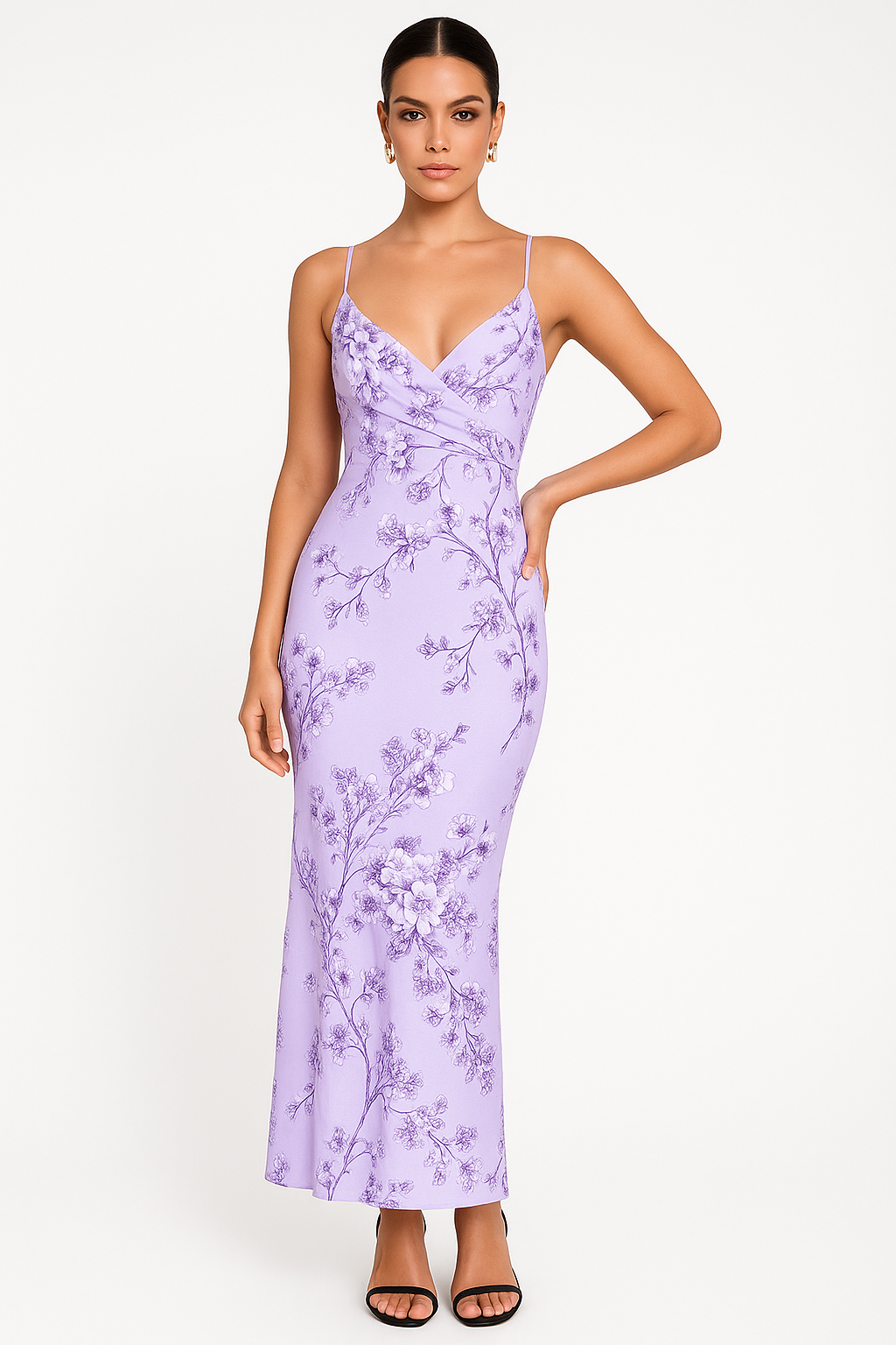 Ladies Maxi Dress – Bodycon Fit – Spaghetti Straps – Stretch – Elegant Print
