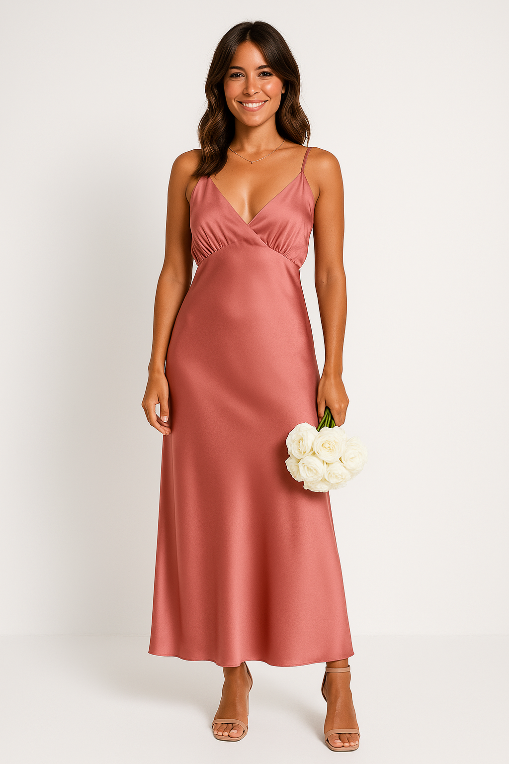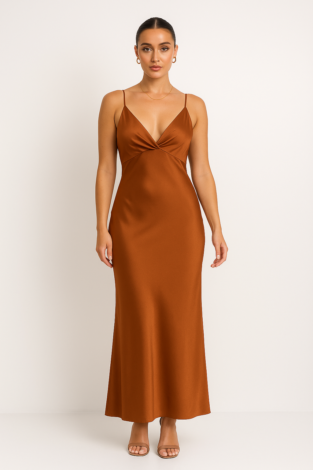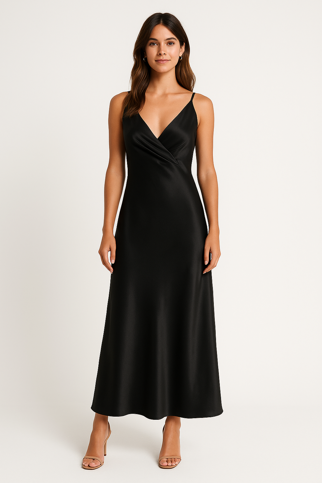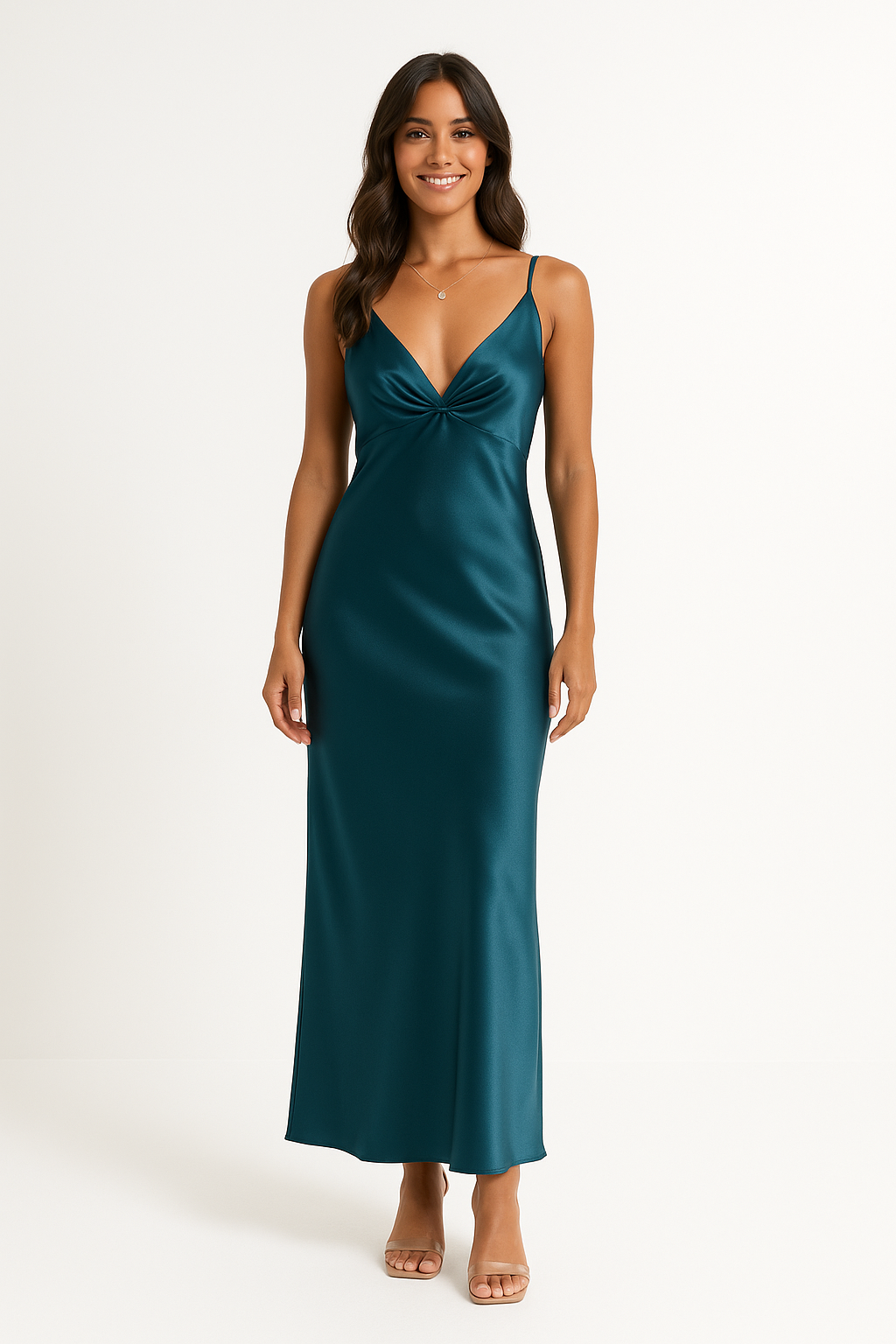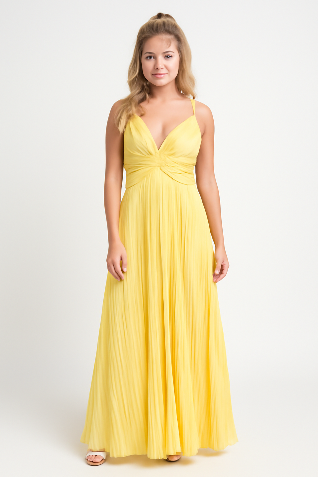 Ladies Maxi Dress – V-neck – Spaghetti Straps – Pleated – Elegant Fit