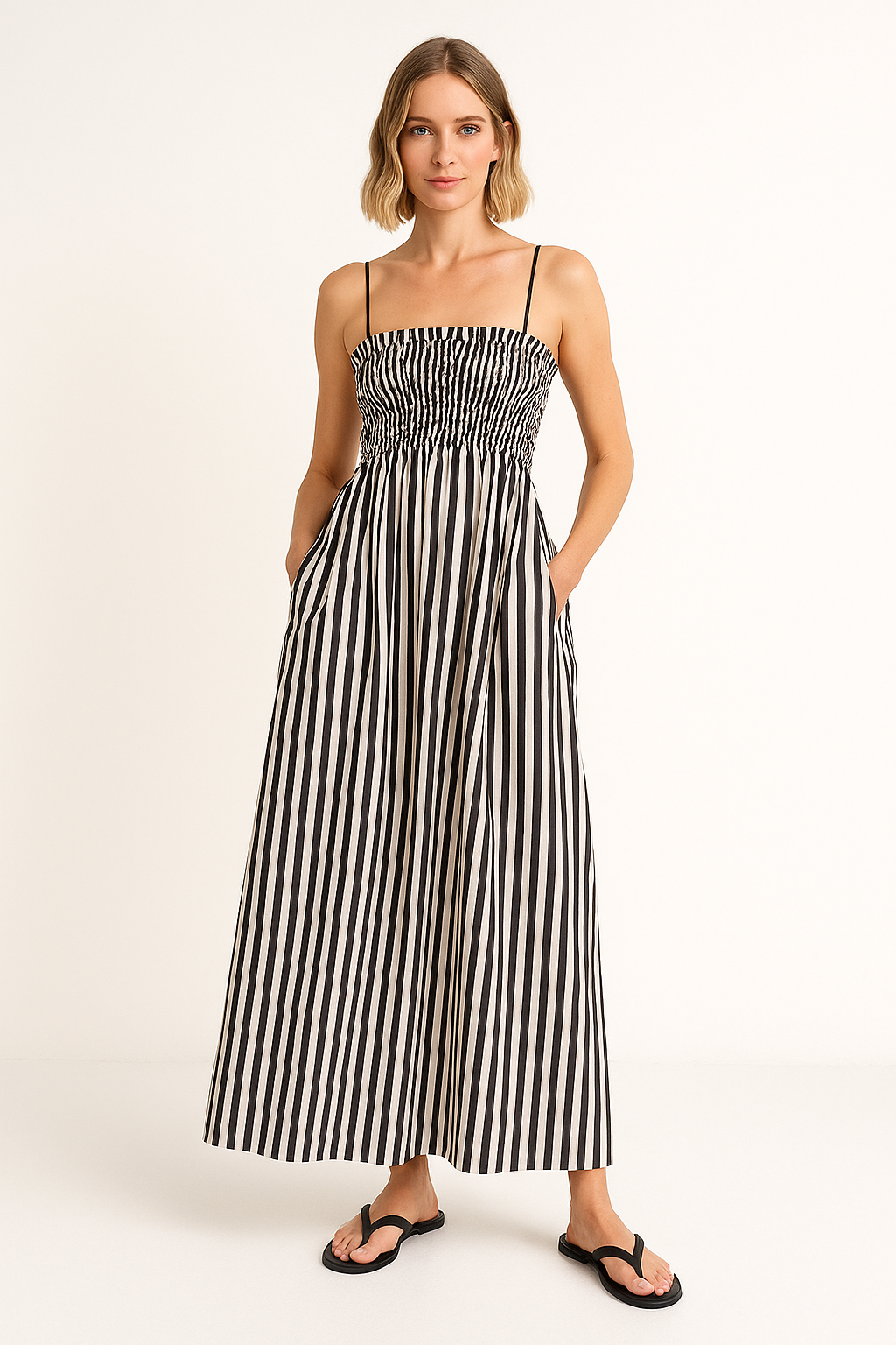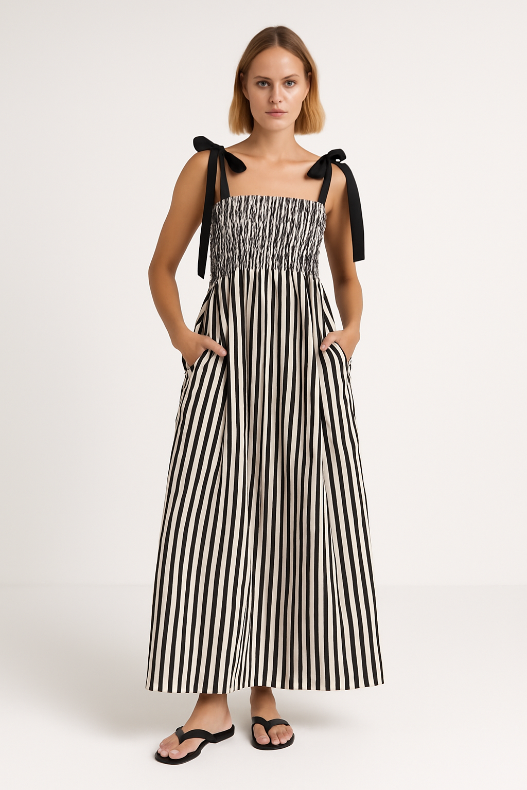 Women's Maxi Dress – Cotton Blend – Smocktop – Tie Straps – Flowy Model