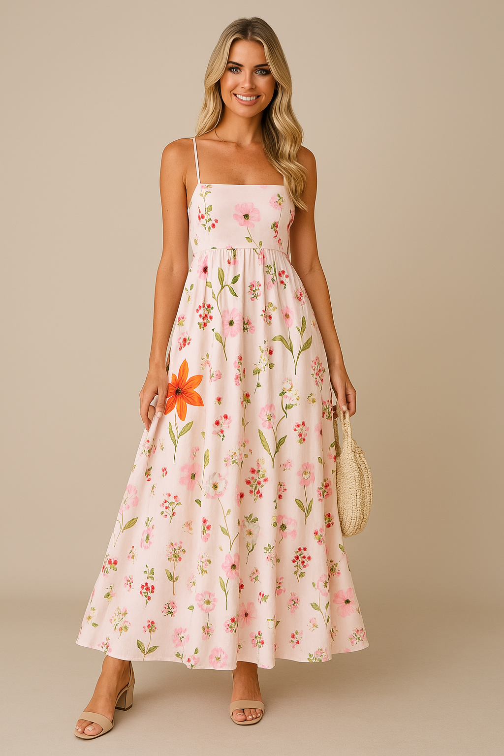 Ladies Maxi Dress – Shirred Top – Adjustable Tie Straps – Cotton – Floral Print
