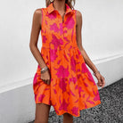Women's mini dress – A-line fit – Sleeveless – Button closure – Floral print – Layered skirt