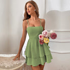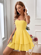Ladies mini dress – Fitted bodice – Layered skirt – Spaghetti straps – Backless