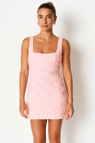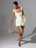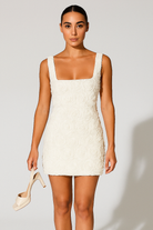 Women's mini dress – Tailored fit – 3D floral applique – Straight neckline