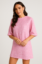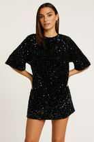 Women's Mini Dress – Relaxed Fit – Sequins – Low Back – Short Sleeves