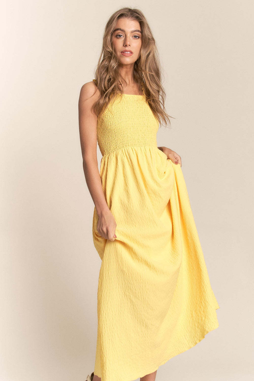 Ladies Mini Dress – Smocktop – Crinkle Fabric – Spaghetti Straps – Flared Skirt