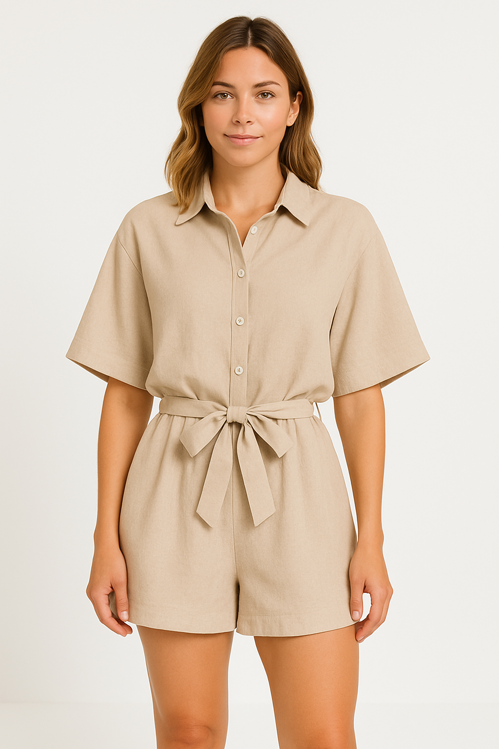Women's Romper – Cotton Blend – Button Closure – Waist Belt – Casual Fit