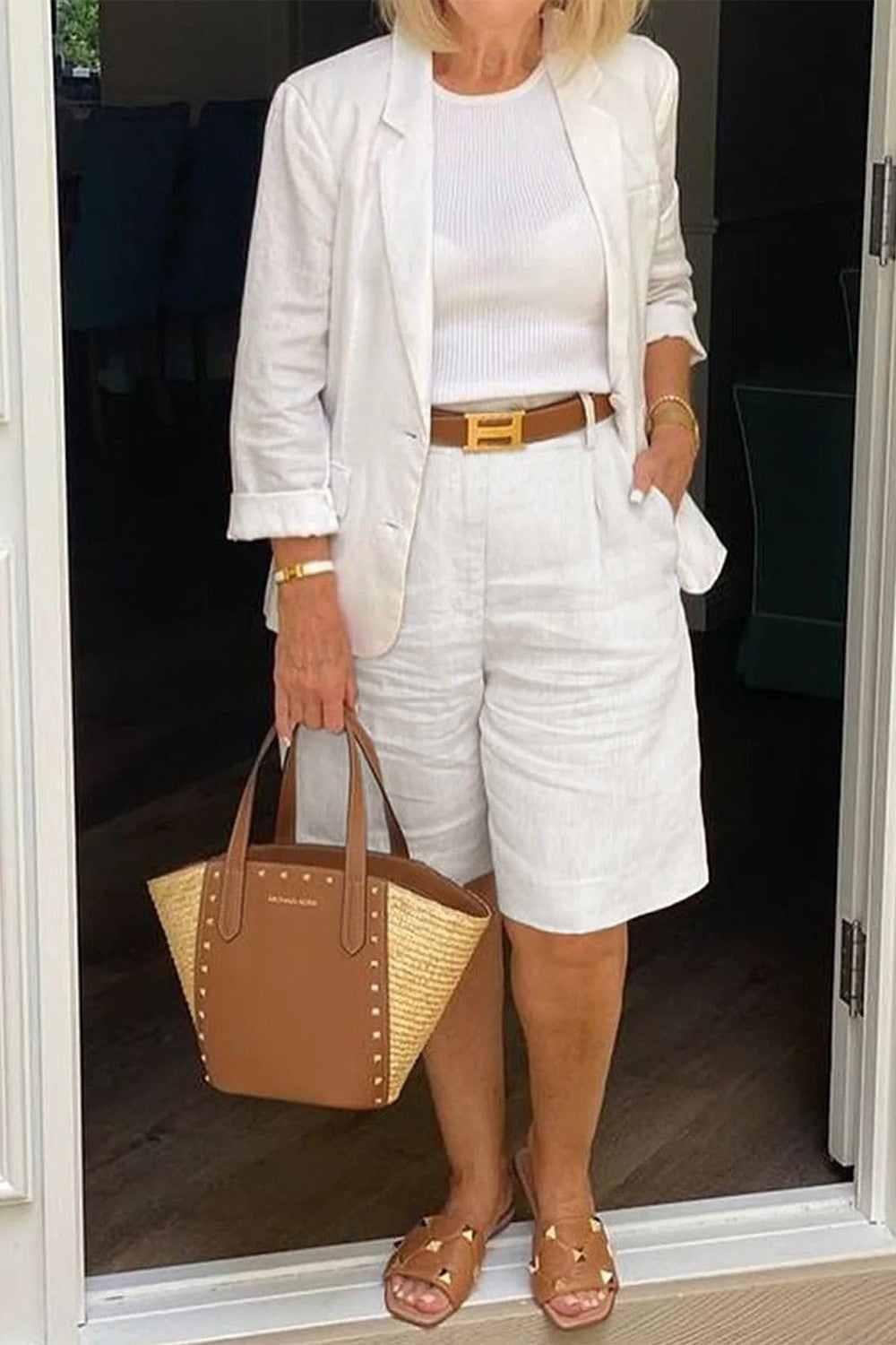 Women's Blazer and Short Set – Relaxed Fit – Natural Fabric – Tailored Knee-length
