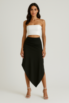 Women's Midi Skirt – Elegant Fit – Ruched Waist – Asymmetrical Hem – Luxury Fabric