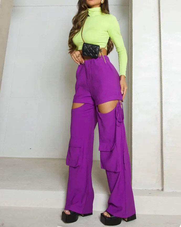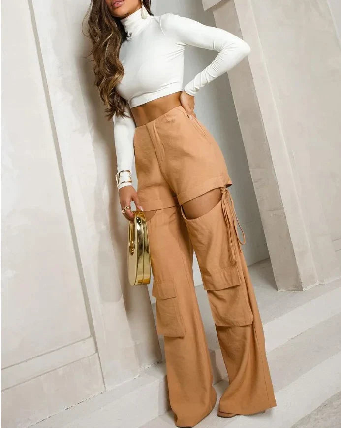 Ladies Set – Sleeveless Vest with Peplum – High Waist Pants – Wide Legs – Breathable Fabrics