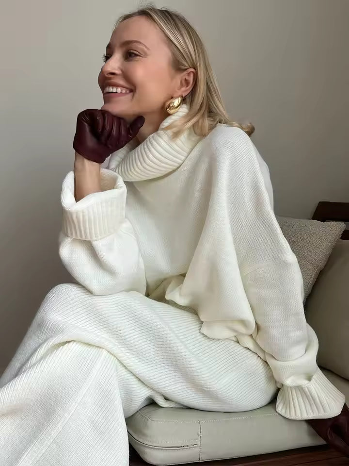 Ladies Two-Piece Set – Oversized Turtleneck Sweater – Maxi Skirt – Relaxed Knit Fit
