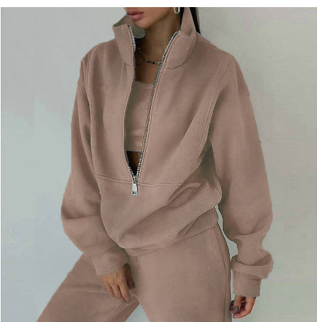 Women's Half-Zip Sweater - Oversized Fit - Long Sleeves - Casual Sporty Look