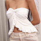 Ladies Bustier Top – Strapless Cropped Model – Twisted Neckline – Ruffle Hem
