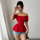 Discover the Women's Crop Top – Off Shoulder, a trendy item with a fitted silhouette and elegant ruched detail. This stylish crisscross waist top perfectly accentuates your figure, ideal for a fashionable look. Comfortable and versatile, your go-to for any occasion.
