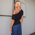 Women's Off-Shoulder Top – Slim Fit – Asymmetrical Neckline – Soft Stretch Fabric