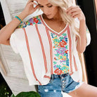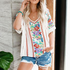 Women's T-shirt with V-neck – Relaxed Fit – Breathable – Short Sleeve – Floral Print