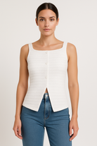 Women's Tank Top – Slim Fit – Ribbed Texture – Button Detail – Sleeveless Design