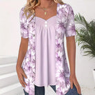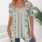 Women's Top with Short Sleeves – Sweetheart Neckline – Relaxed Fit – Floral Print Layered Look