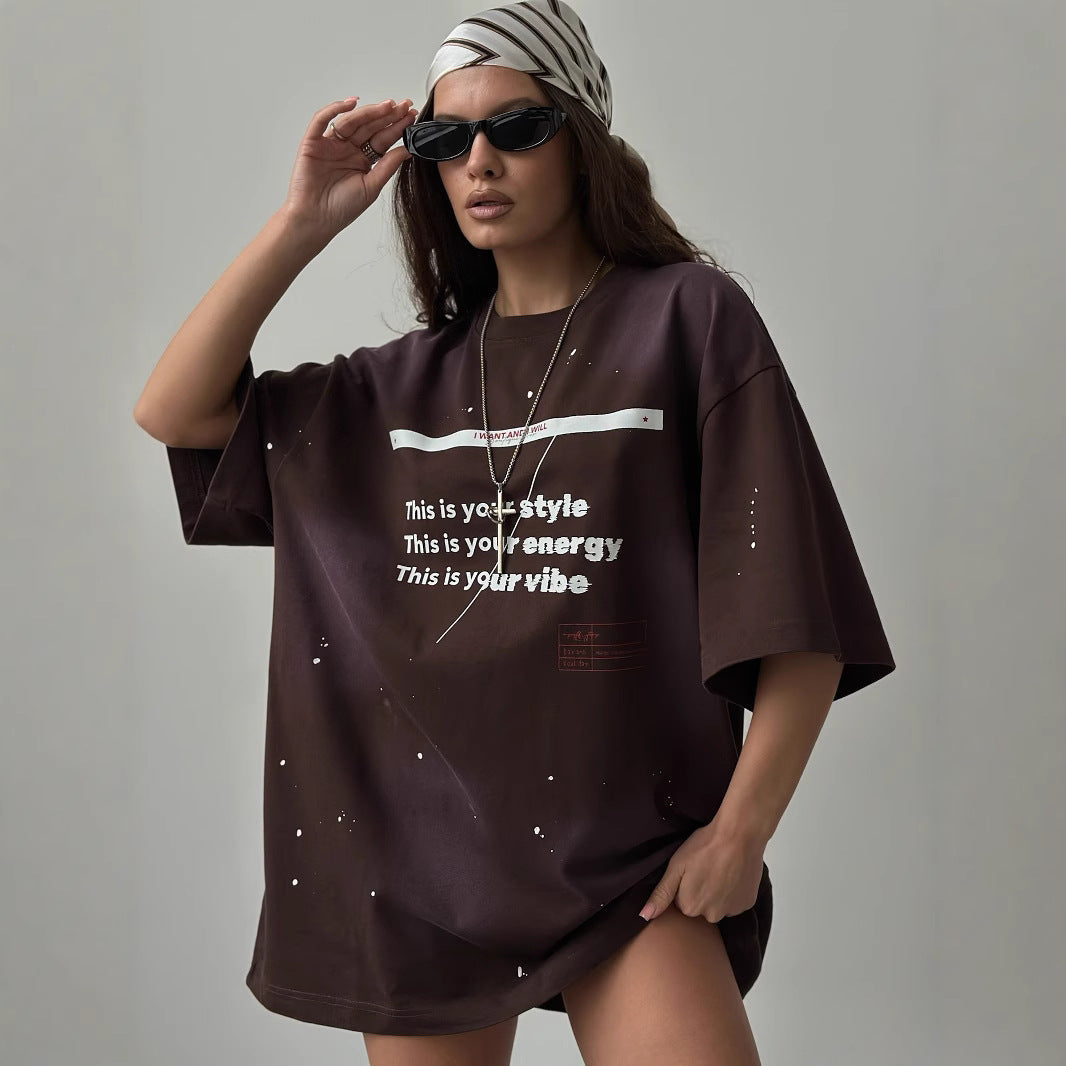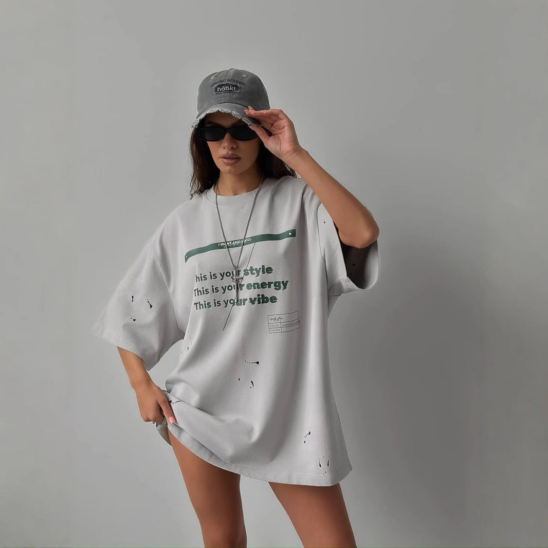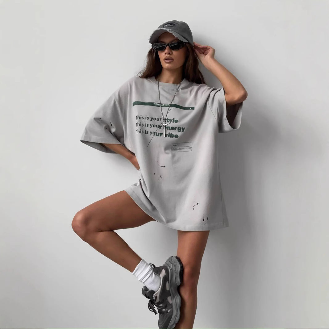 Women's Oversized T-shirt – Cotton – Vintage Look – Distressed Print – Tunic Style