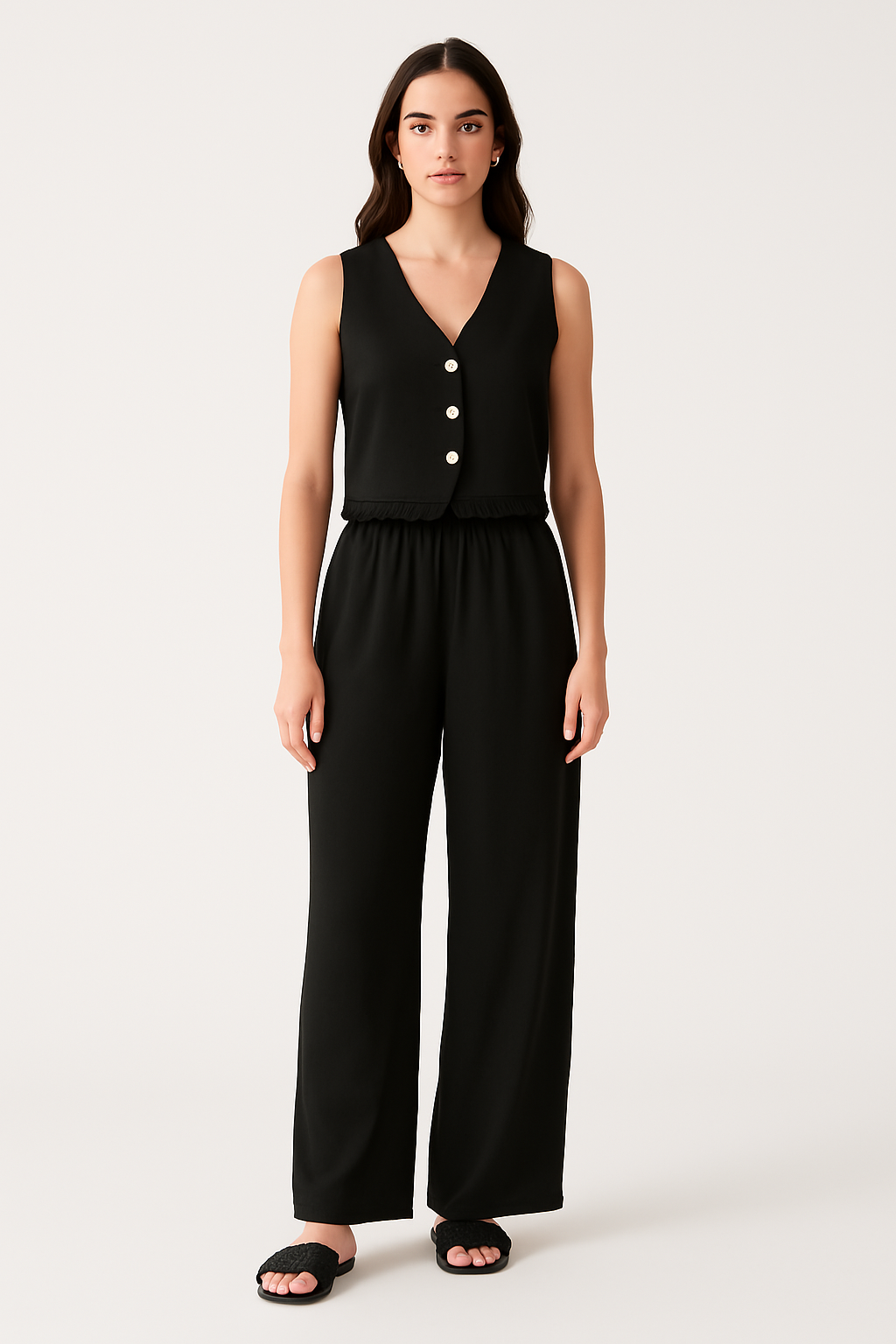 Women's Vest Top – Tailored Fit – V-Neck – Button Closure – Cropped Breathable Design