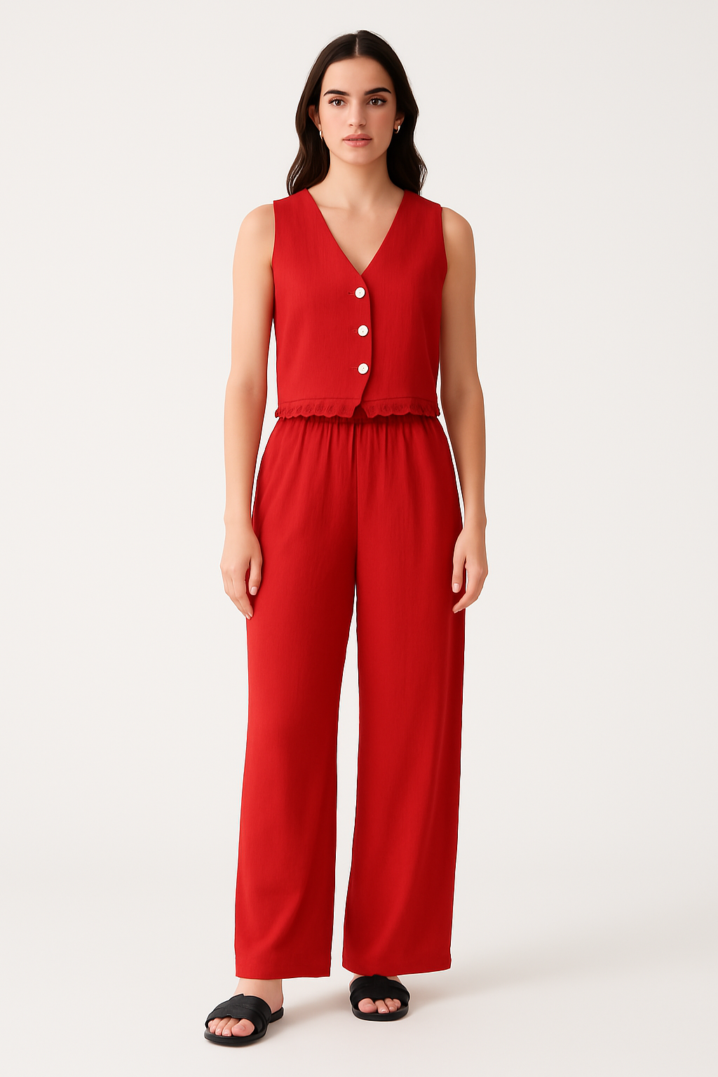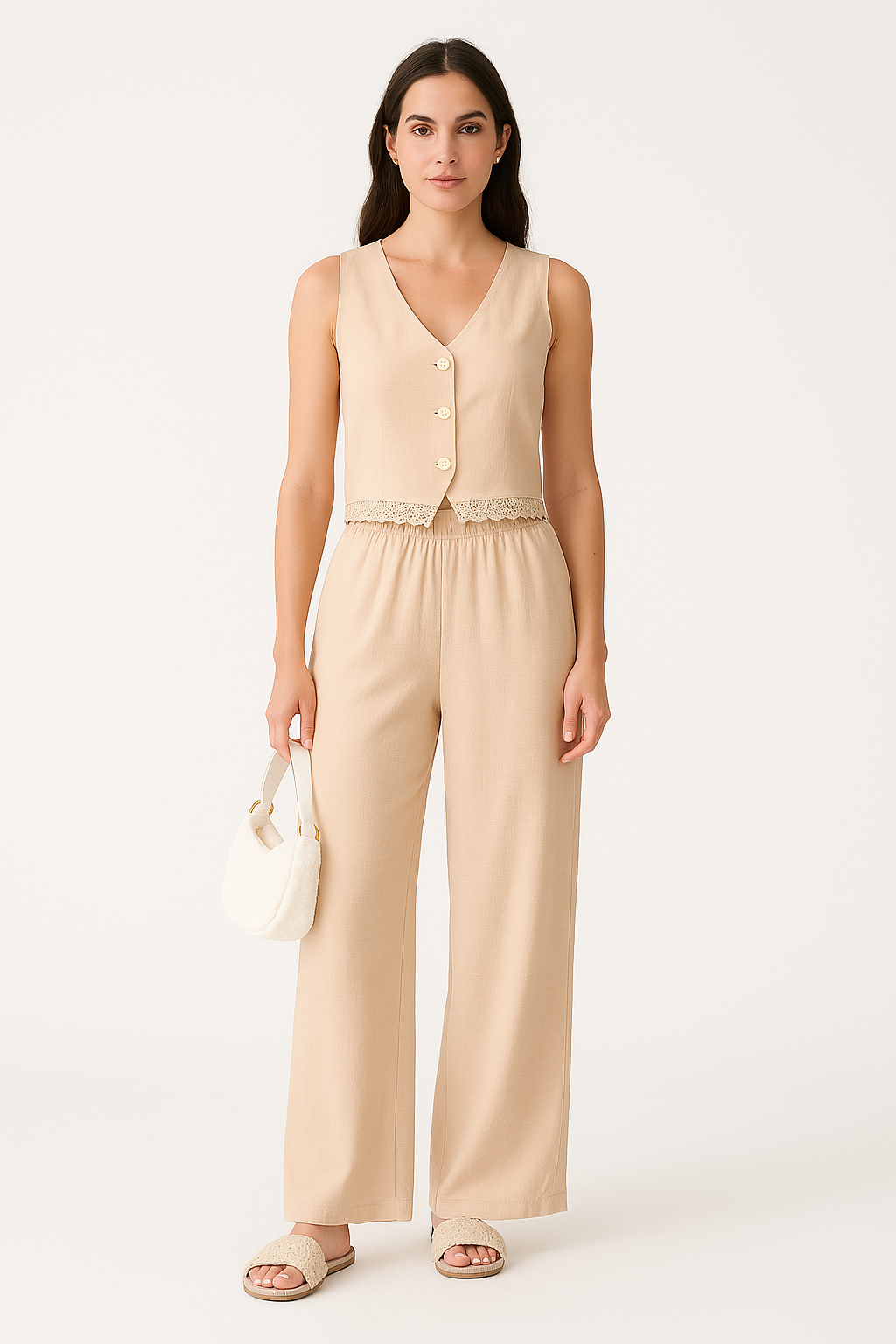 Women's Gilet – Tailored Fit – Button Closure – Lace Accent – Breathable Fabrics