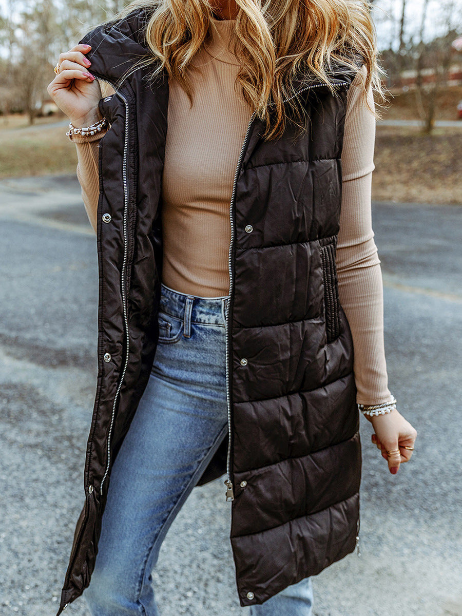 Women's Long Bodywarmer – Quilted – With Hood – Comfortable Straight Fit