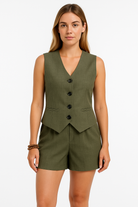 Wear this tailored vest with matching shorts for a complete, chic set, or pair it with tailored trousers and a minimalist top for a business-yet-casual look.