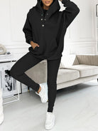 This comfortable set for women offers a relaxed and fashionable look, ideal for everyday activities or a relaxed day at home. The design provides an easy fit and style, while the fabric makes it perfect for long-lasting comfort.