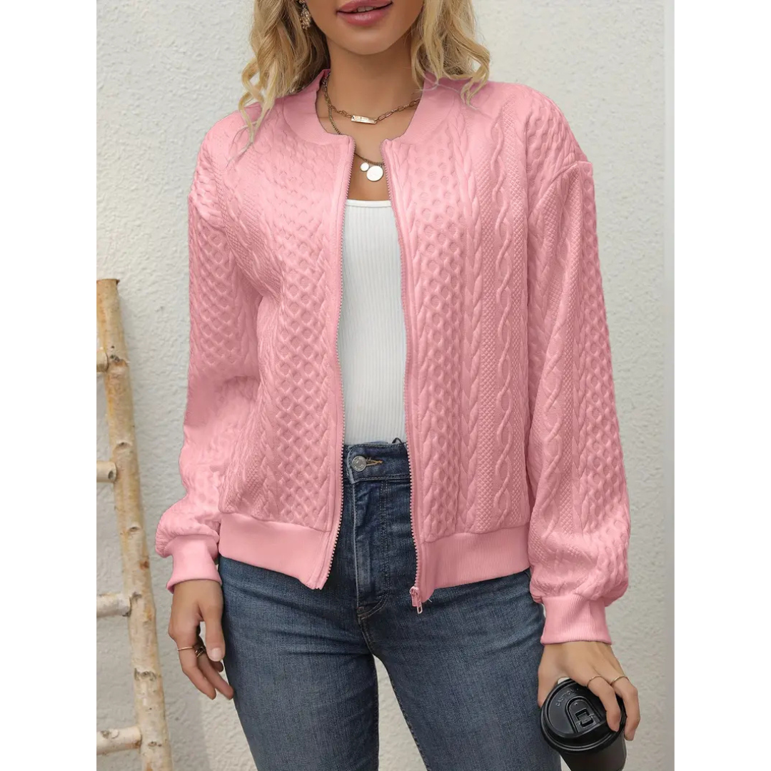 This women's knitted warm winter jacket with zipper has a practical design, ideal for the colder months. It provides extra warmth and comfort, with a zipper for easy closure.