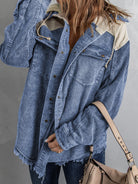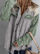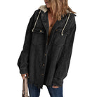 Women's hooded jacket – Corduroy – Oversized fit – Button closure – Frayed hem