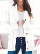 This long cardigan combines elegance and comfort, offering a stylish way to stay warm. With its versatile design and relaxed fit it provides the perfect balance between warmth and fashion, making it ideal for layering.