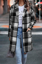 Women's Wool Coat – Oversized Fit – Check Pattern – Notched Collar – Mid-Length