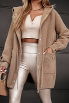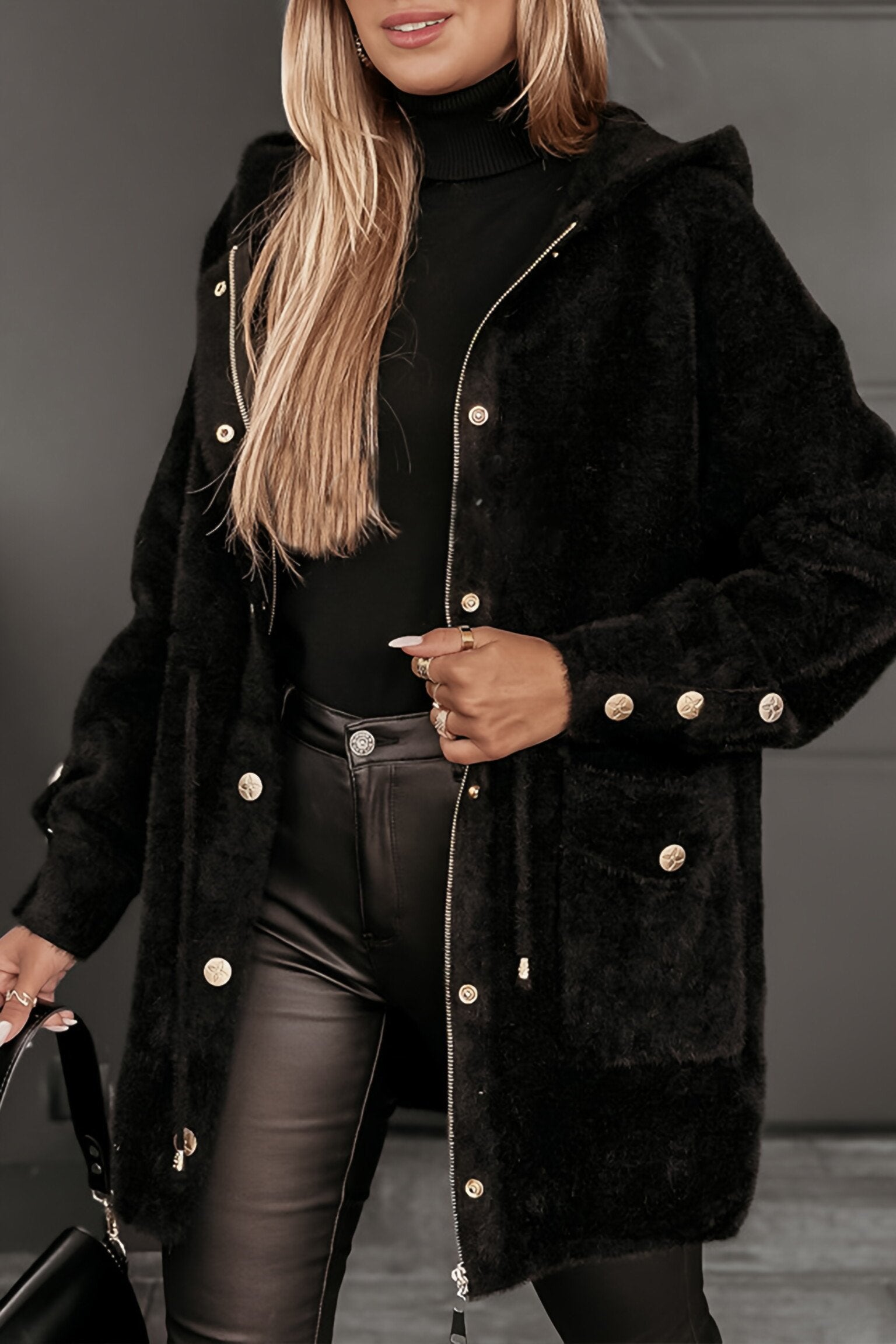 This women's jacket with a hood and long sleeves is a perfect combination of style and functionality. Designed to keep you warm and comfortable, this jacket is ideal for daily activities and casual outings, regardless of the season.