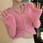 This stylish cropped sweater for women offers a contemporary look with a modern twist. The compact design makes it a versatile garment that is easy to pair with different outfits for a chic, casual appearance.