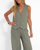 Elegant Linen Vest and Wide-Leg Pants Set for Women