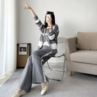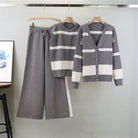 A stylish set featuring a striped cardigan and a matching piece, designed to add a trendy accent to your casual wardrobe. This set combines bold patterns with a relaxed fit, perfect for creating a laid-back yet fashionable look.