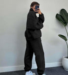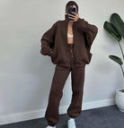 This set consists of a jacket with a zipper and a pair of drawstring pants, perfect for a comfortable and stylish look. The design offers both functionality and fashion, ideal for casual days or sporty outings.