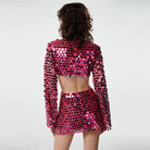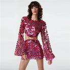 This two-piece set, consisting of an embellished top with long sleeves and a matching skirt, offers a stylish and refined appearance. The subtle embellishments provide a sparkling accent, while the long sleeves and elegant cut create a chic look, perfect for special occasions.