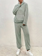 This two-piece teddy set offers ultimate comfort and warmth, ideal for the cooler months. The soft teddy material provides a luxurious feel, while the design gives you a comfortable and stylish look, perfect for relaxed days at home.